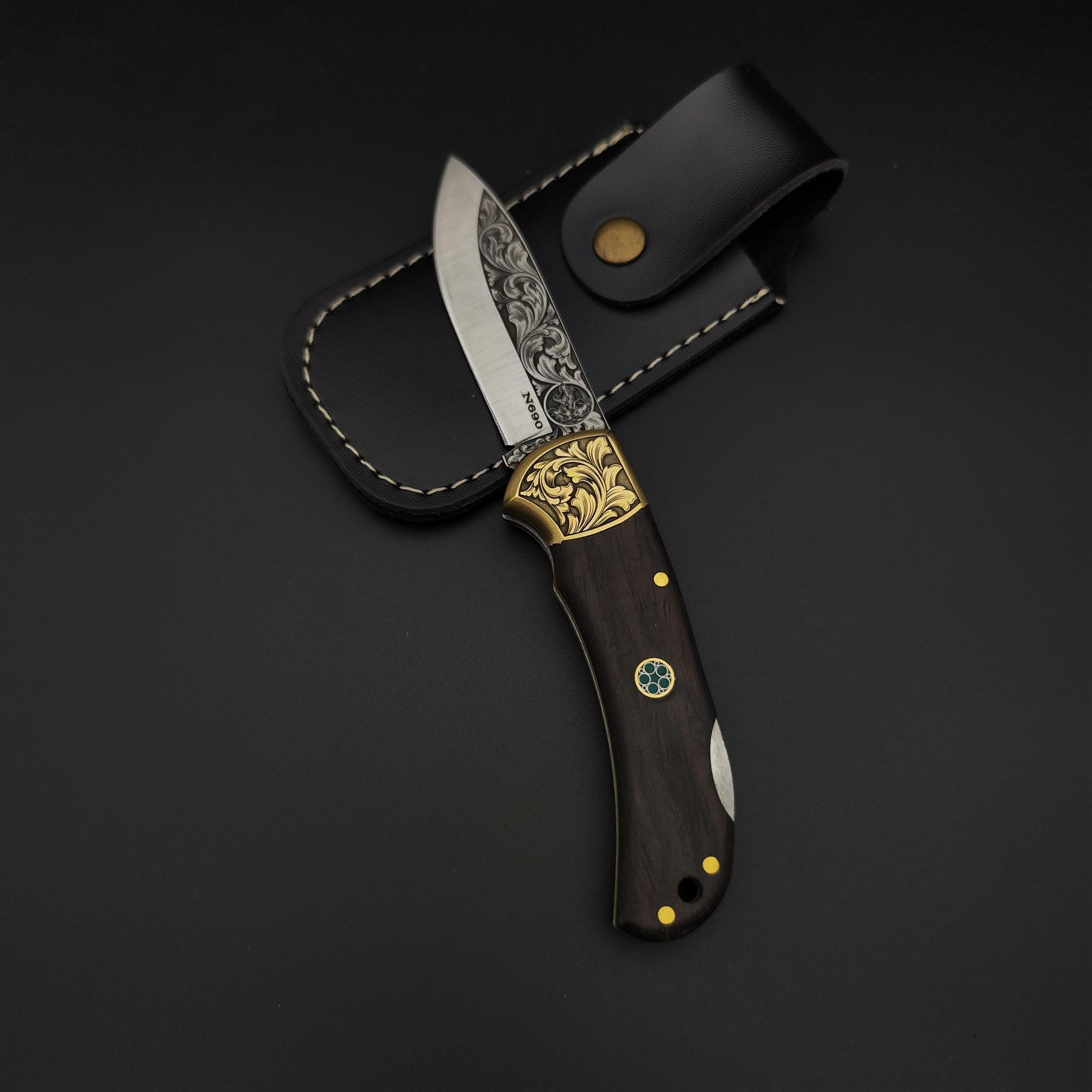 El yapımı N690 çelik üzerine gravür işlemeli kamp çakısı