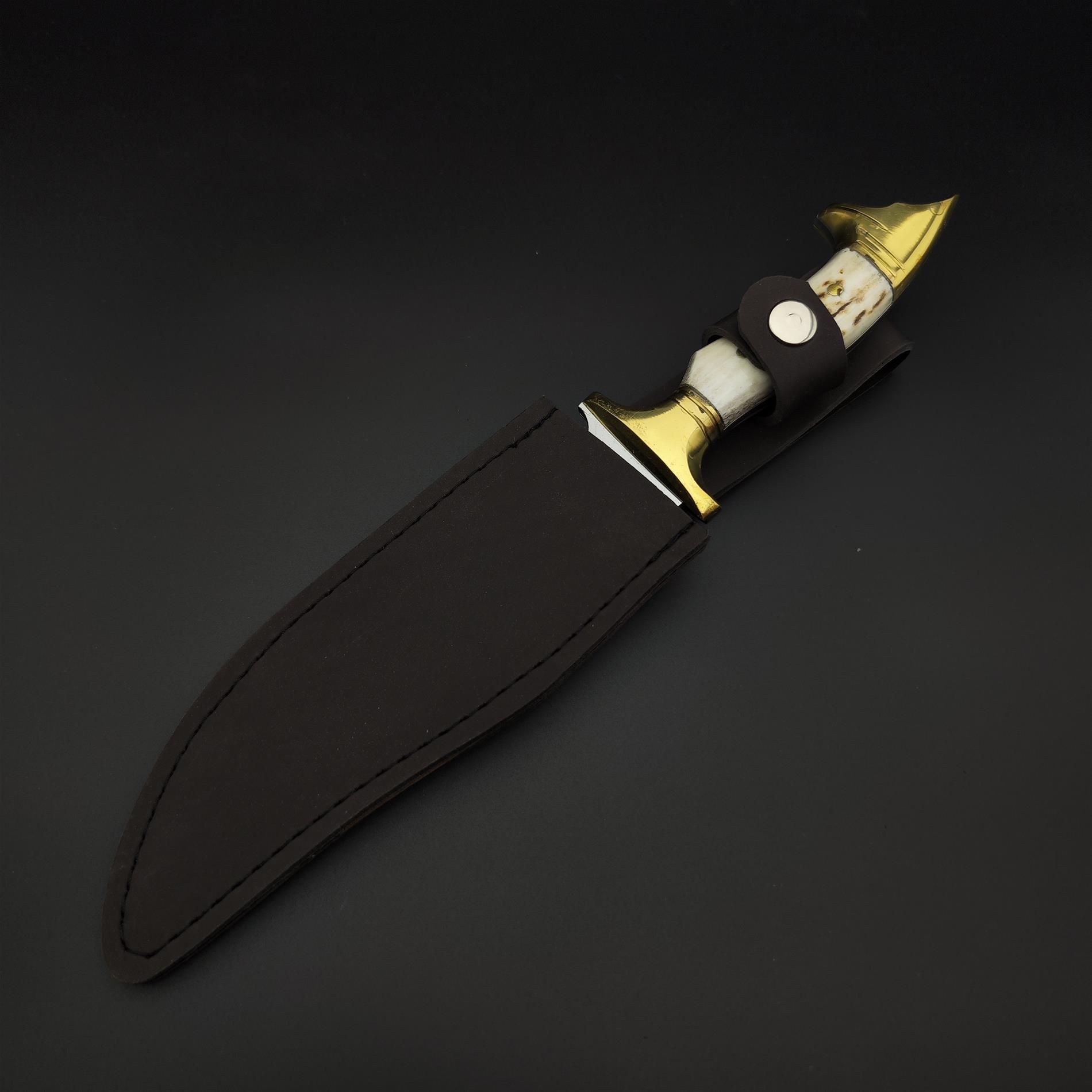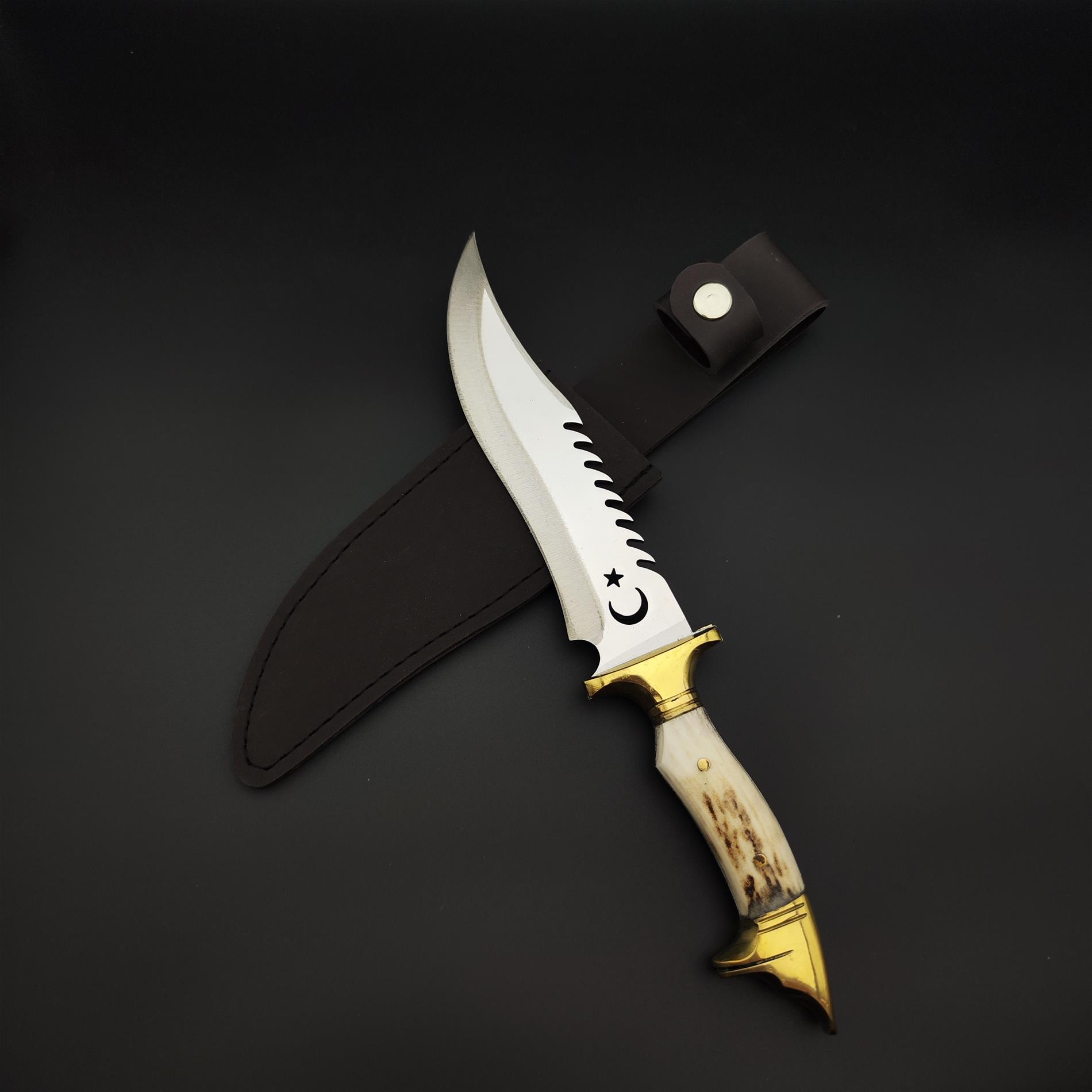 Orijinal geyik boynuzu kabze kurt başlı kamp bıçağı